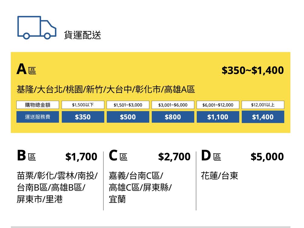 購物金額的不同有所增減,在基隆、台北、桃園、新竹、台中、彰化、高雄部分地區的話,最貴則會到 $1,400 元,其他縣市最高是到 $5,000 元。