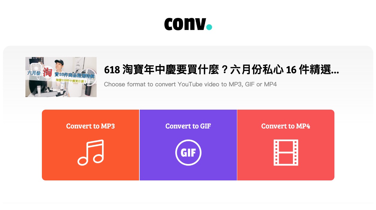接下來就可以選擇要轉成 MP3、GIF 或是 MP4 檔案。