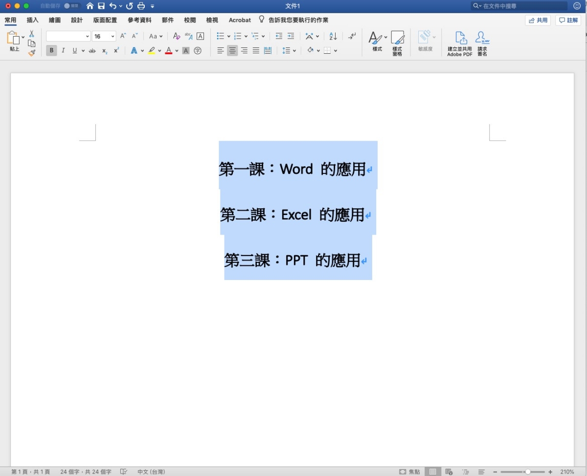 然後弄好需要的標題格式、字型大小、置中等需求。