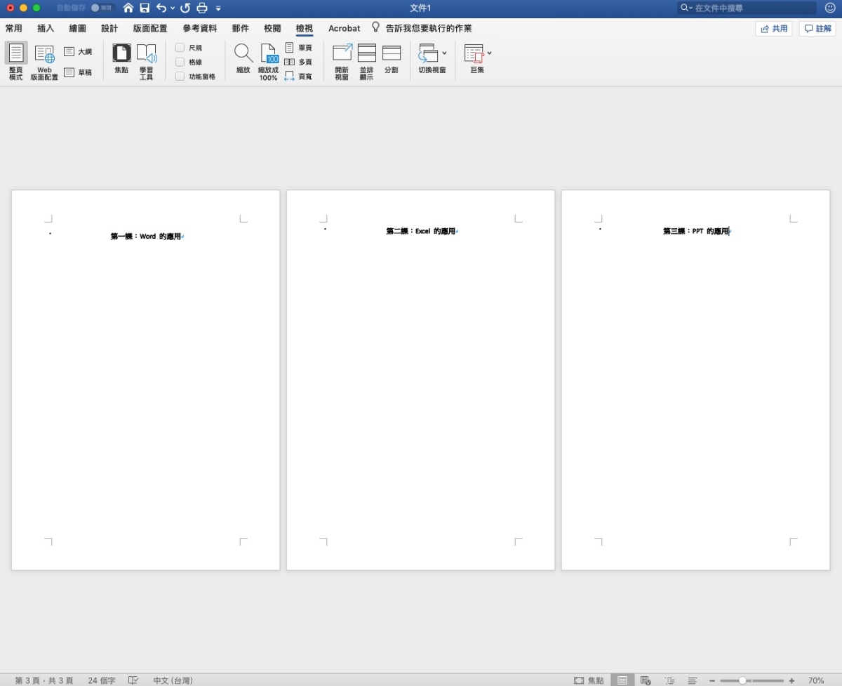 接下來神奇的事情就發生了,剛剛在第一頁列好的標題們,就依序的分發到每一分頁的最開頭去了,是不是很實用的一個小技巧呢?