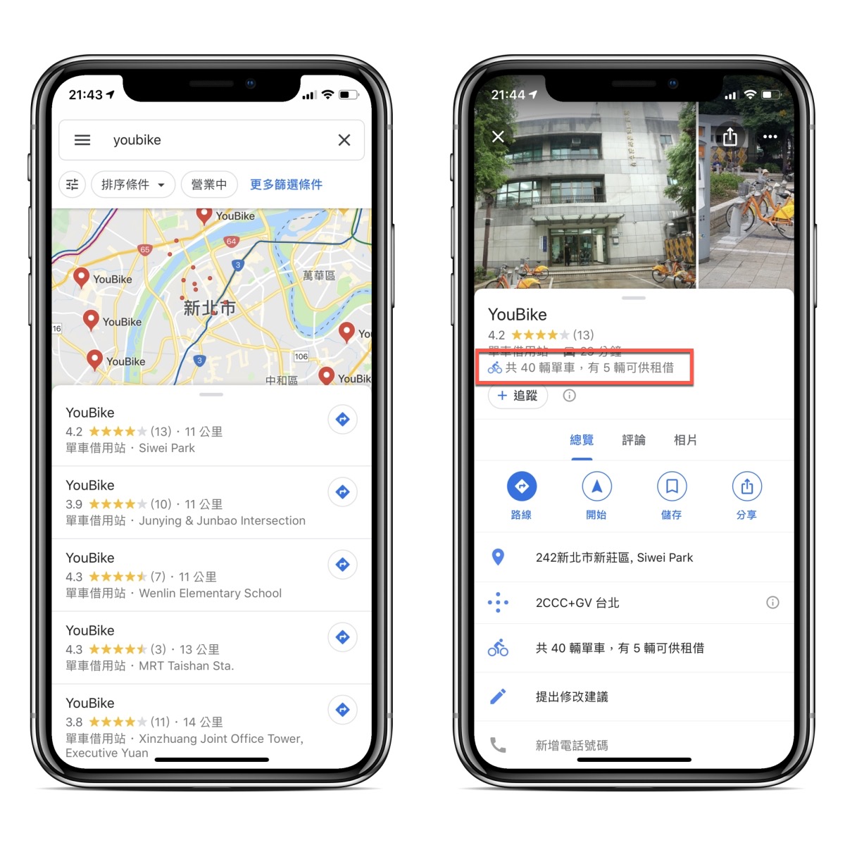 Google 地圖查詢 YouBike、CityBike 空車資訊