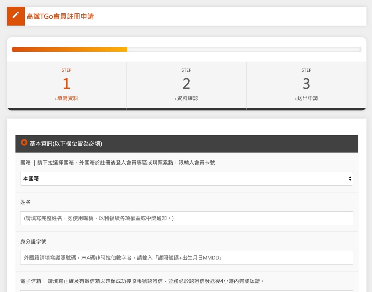 首先,你要有高鐵 TGo 會員,如果還沒有請先進行註冊吧。