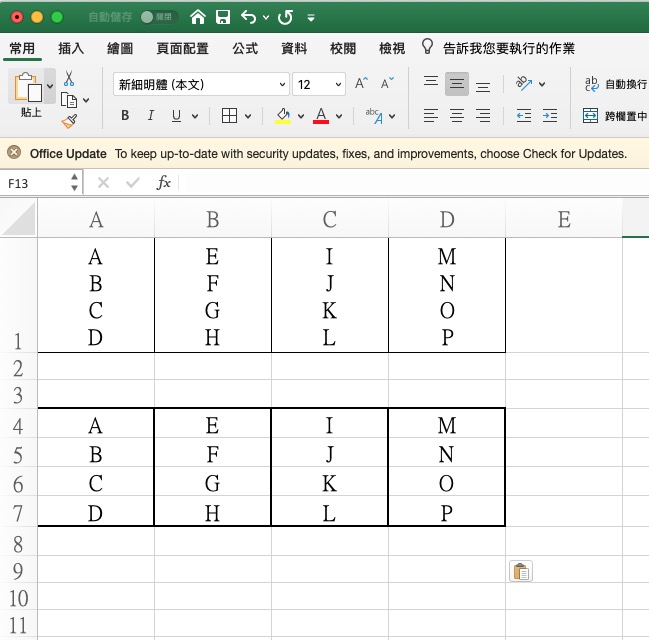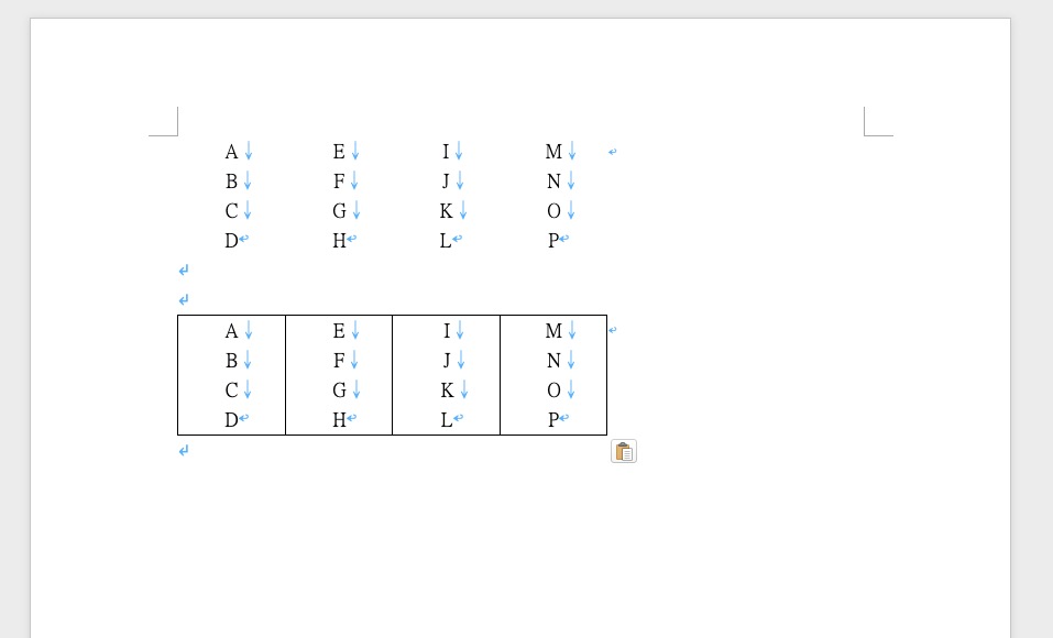 打開 Word 後貼上剛剛複製的內容,如果你的表格沒框線就會像下圖(上)的部份,如果有框線就會是下圖(下)。