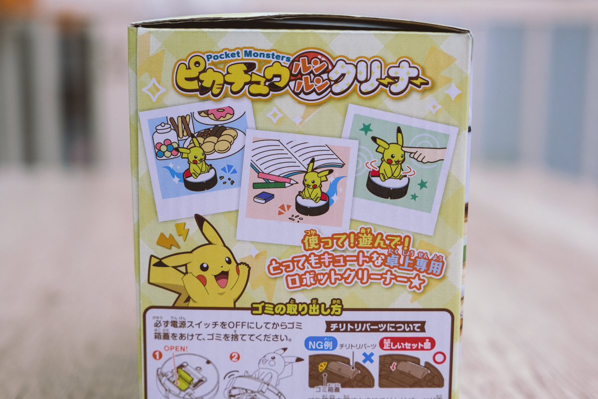 盒子上有標明桌上專用,可以用在那些地方,像是幫你掃桌上的餅乾屑、橡皮擦屑等,或是無聊也可以去逗逗皮卡丘(其實就只是在阻擋他往前..)。