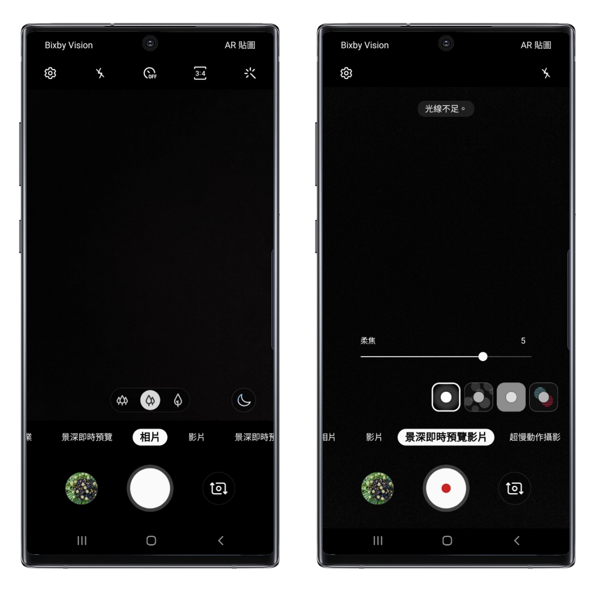 相機功能這次新增的最大特色就是「景深即時預覽影片」,也就是可以拍攝出有景深的影片,且同樣有各種散景濾鏡可以選擇。