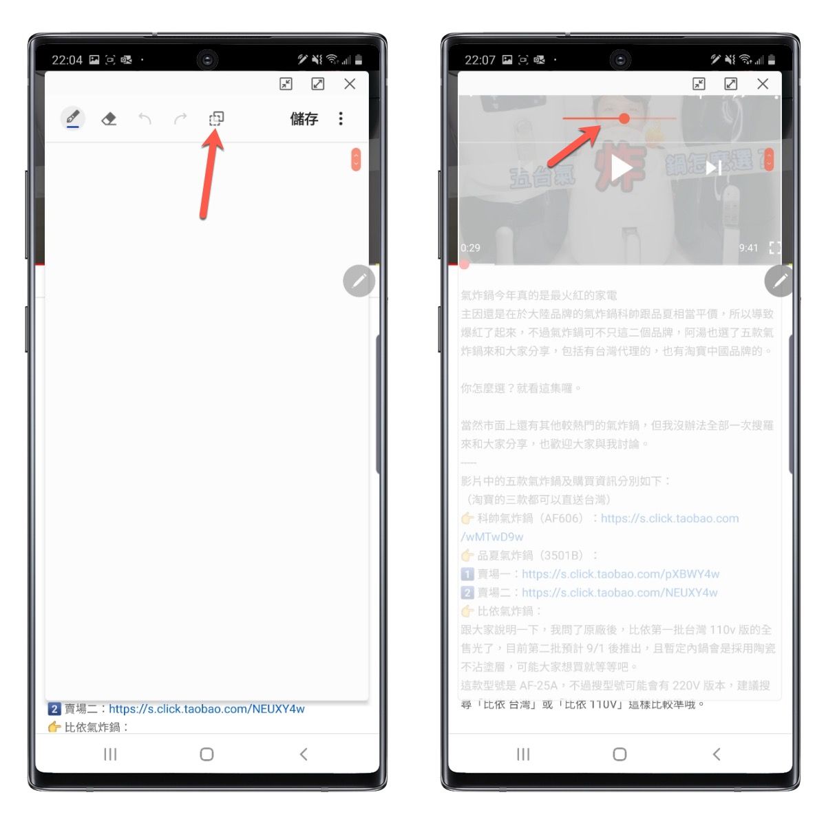 原本就內建的螢幕錄影功能也藉由 S Pen 變的更加強大,除了在邊錄影的期間可以同步錄製自己的畫面外,也能使用 S Pen 在錄影的同時邊進行繪製、註記,用來錄製操作教學影片超好用。