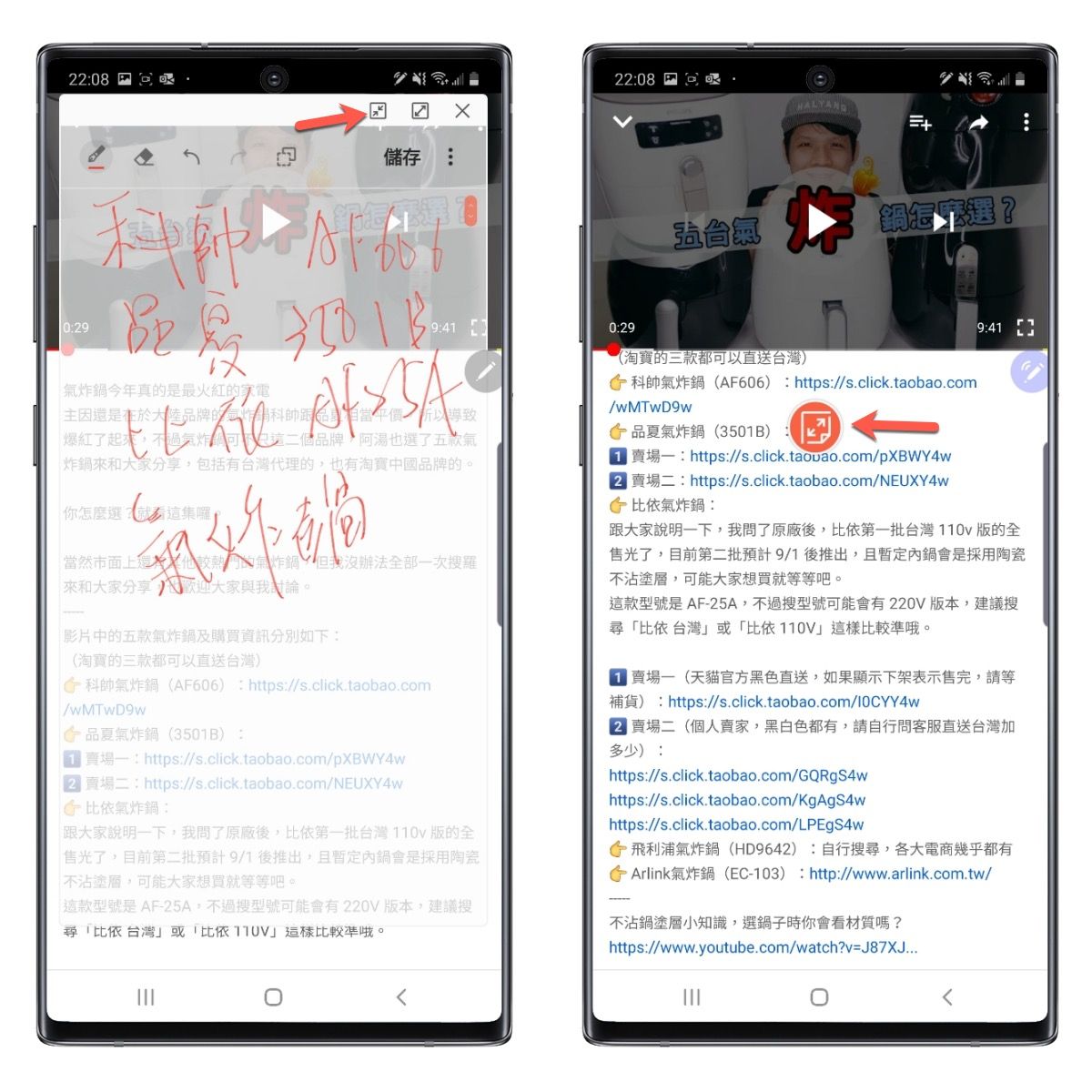 這時就可以邊看著內容邊抄筆記,不用再切來切去,也不需要使用雙視窗,當你該畫面寫的差不多的時候,想要滑去別的地方或切換頁面等,也只要按一下縮小視窗,筆記就會變成一個懸浮氣泡,就可以繼續操作畫面,如果要切換回筆記也只要再按一下氣泡就可以再繼續寫。