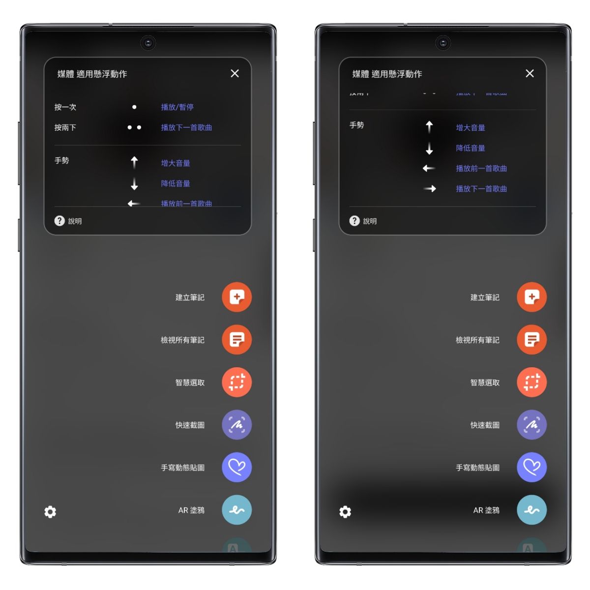 另外在播放音樂或影片時,也可以利用 S Pen 的遠端遙控操作,功能如下: