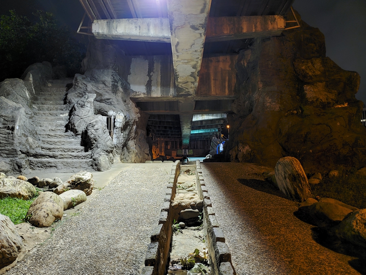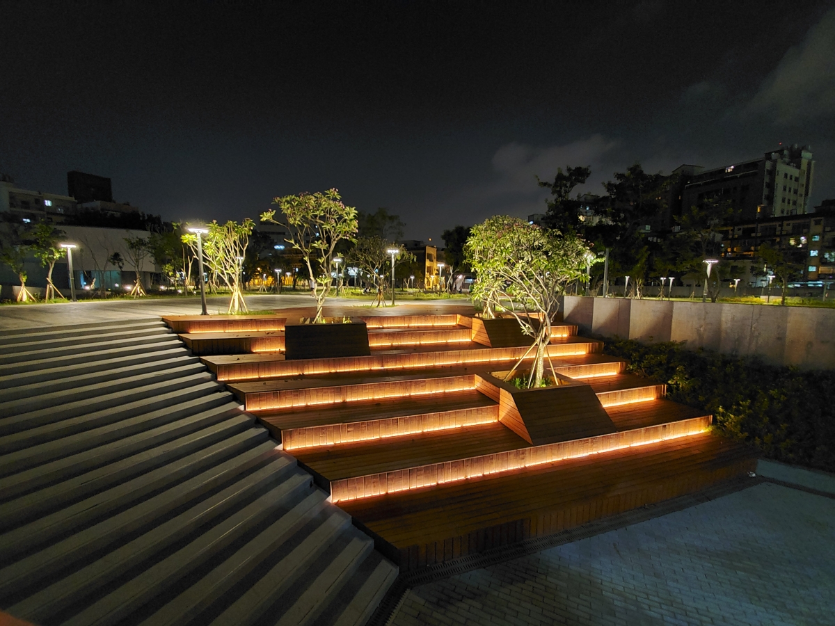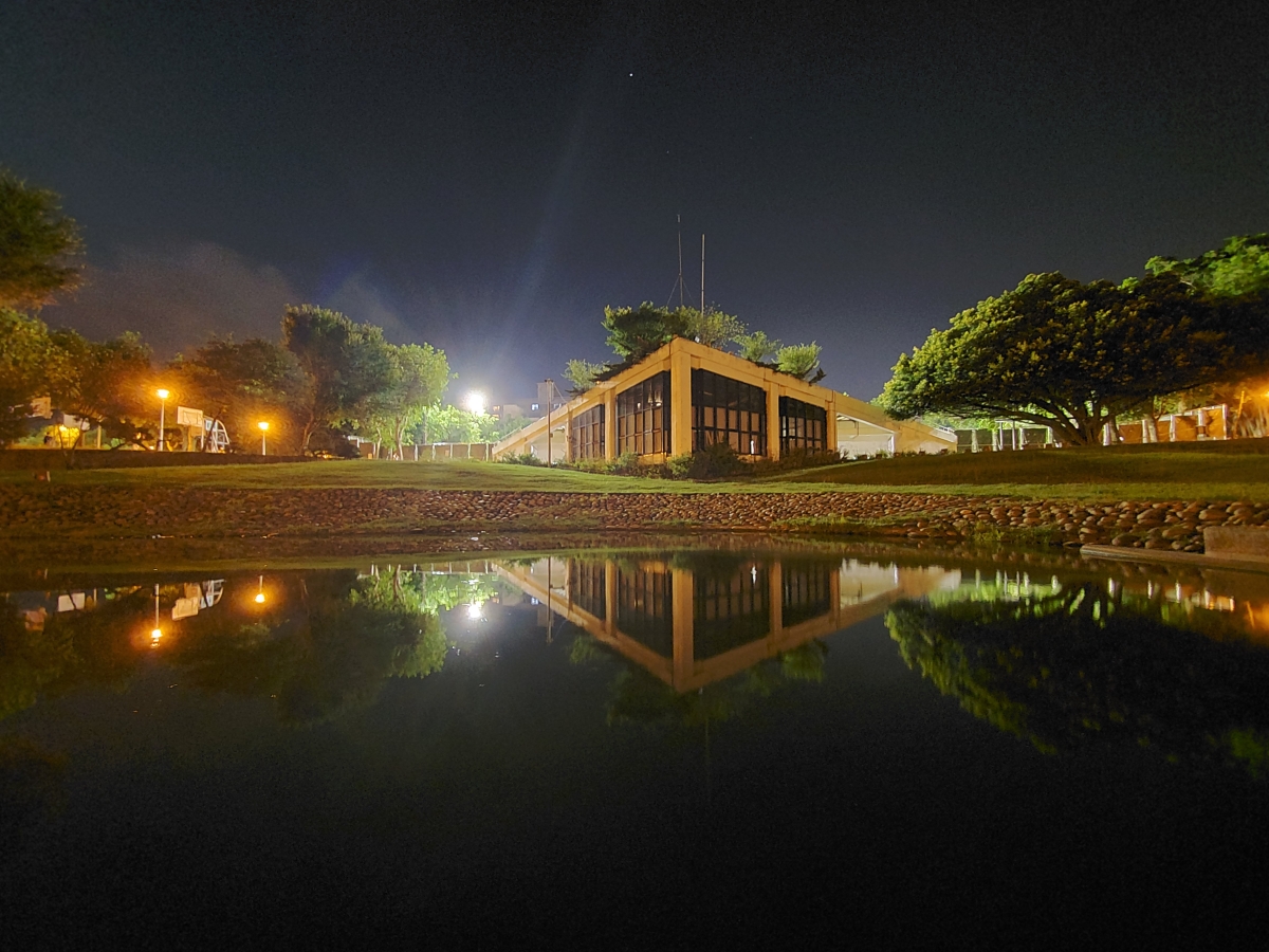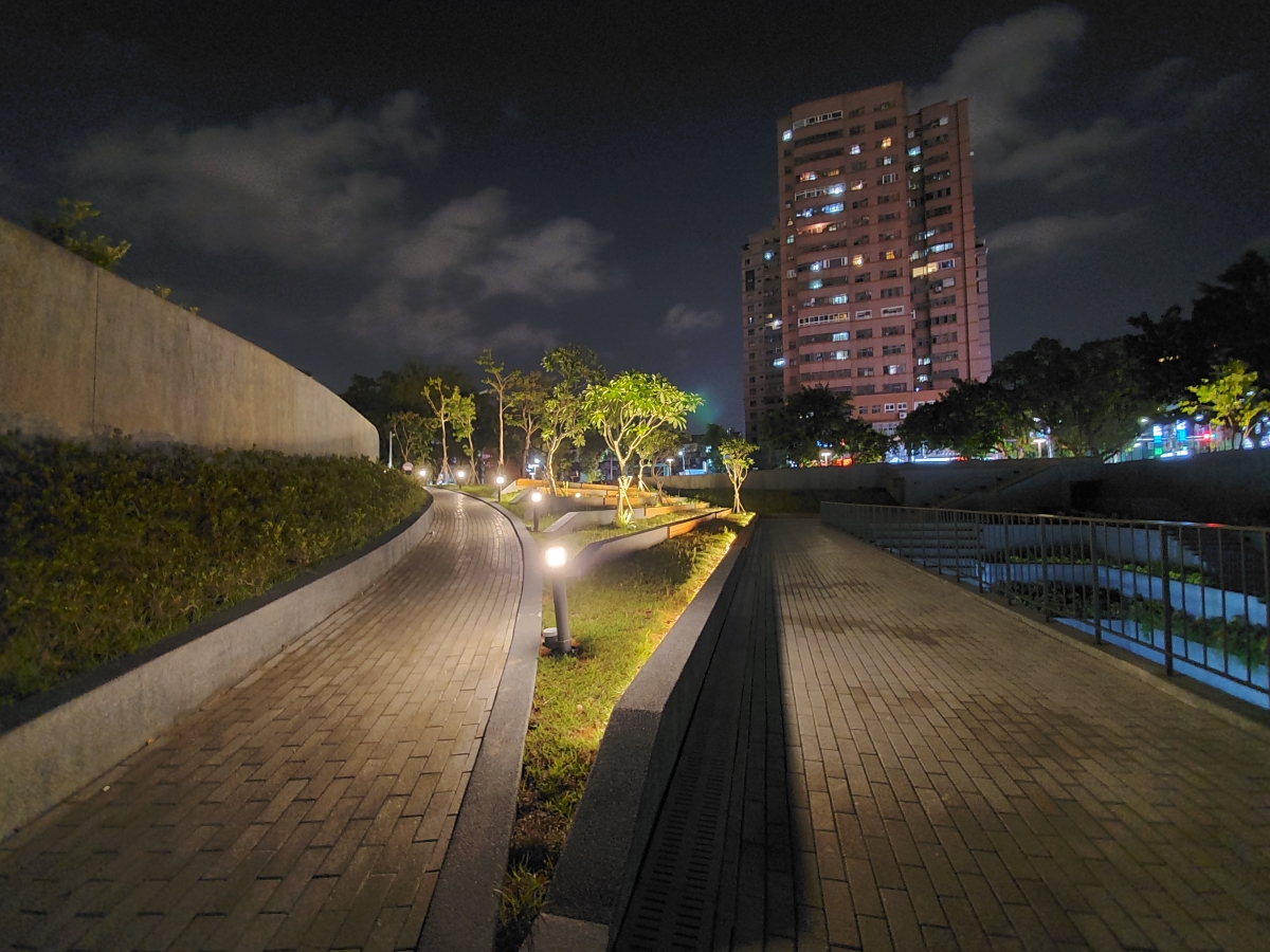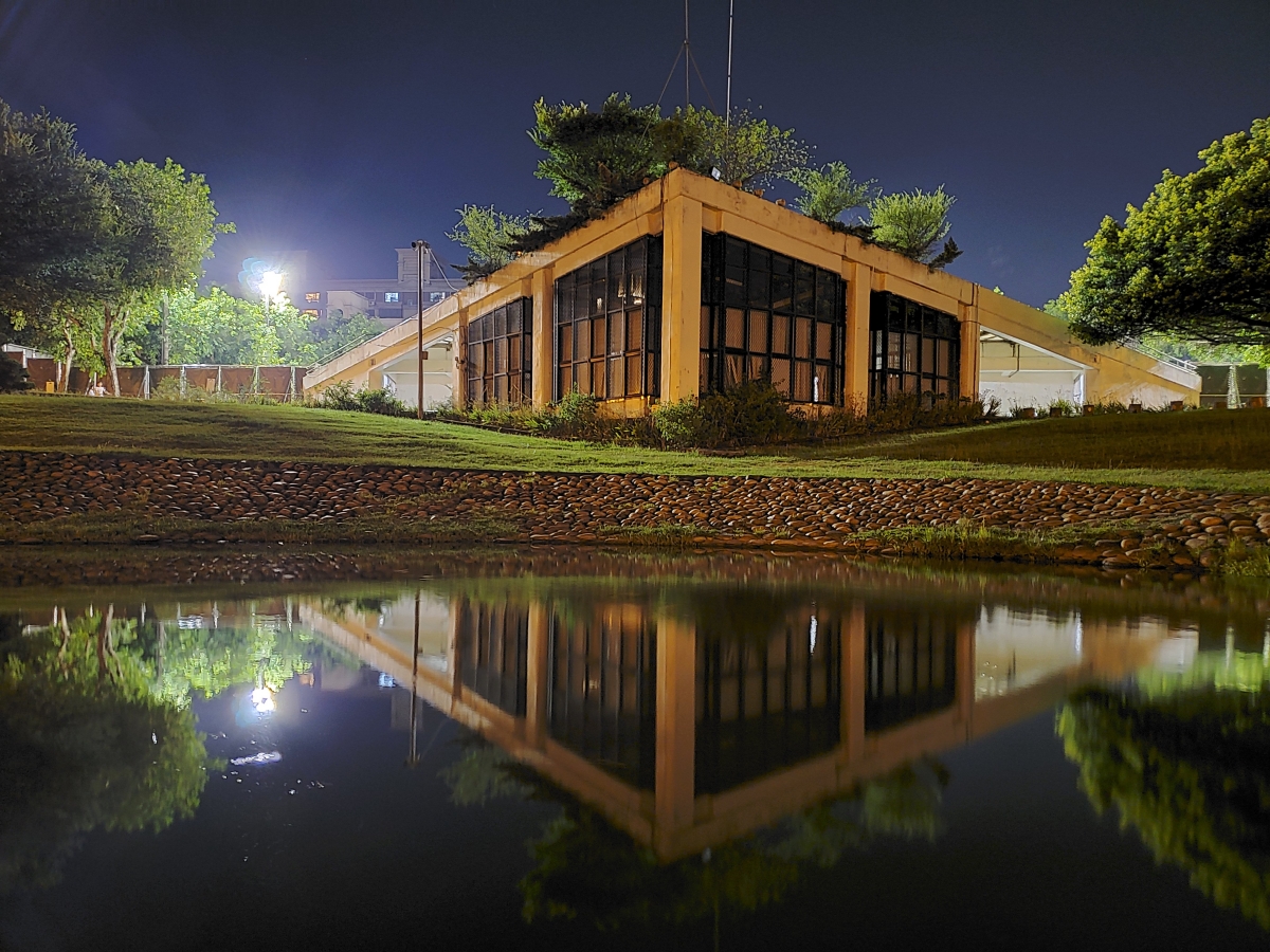 這是離我們家很近的陽明運動公園(桃園),這個水中倒影拍攝點一直是我很喜愛的拍攝地點,現場同樣是一片漆黑,透過夜間模式只需要手持幾秒就能拍攝下來,也不需要腳架。