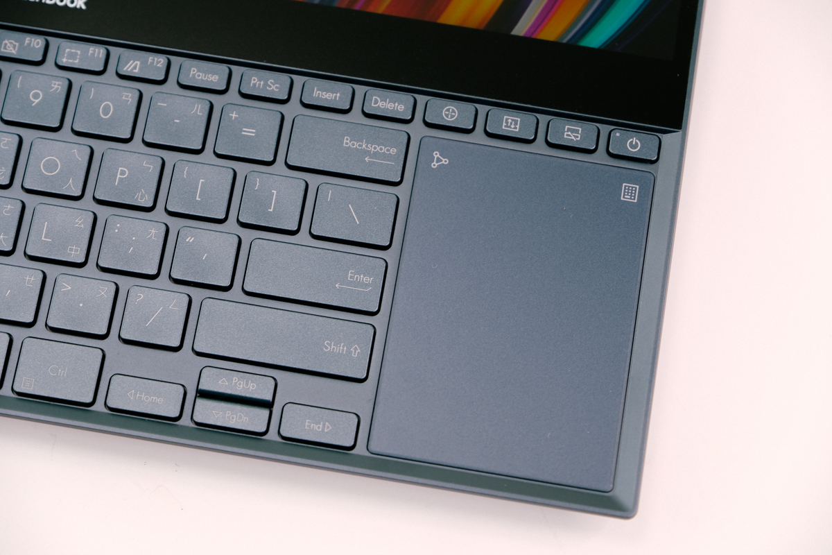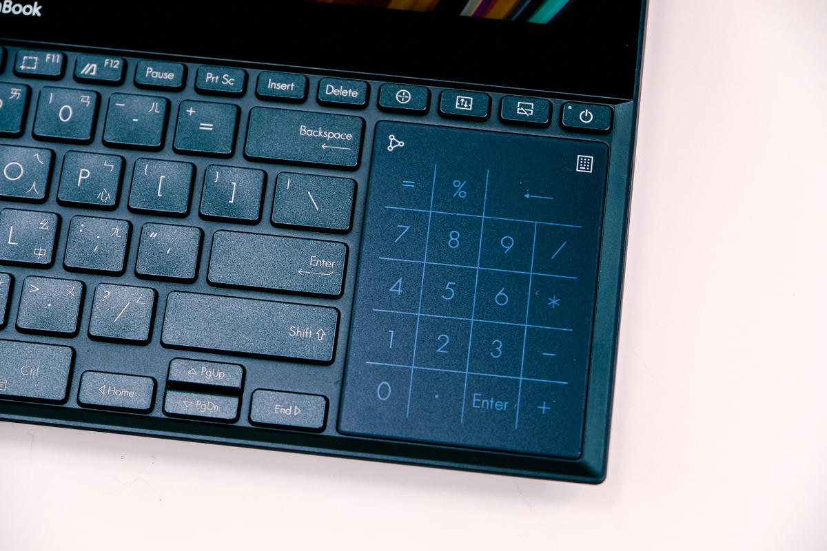 當我們長按右上角的計算機圖示時,就會切換為數字鍵盤模式,再長按就會切回原本的觸控板模式,相當的便利,這樣的結合讓鍵盤尺寸更小的狀況下仍然保留了數字鍵盤的設計。