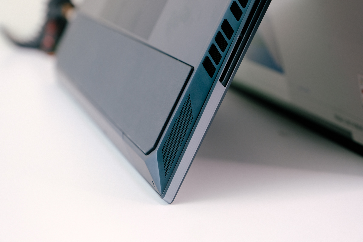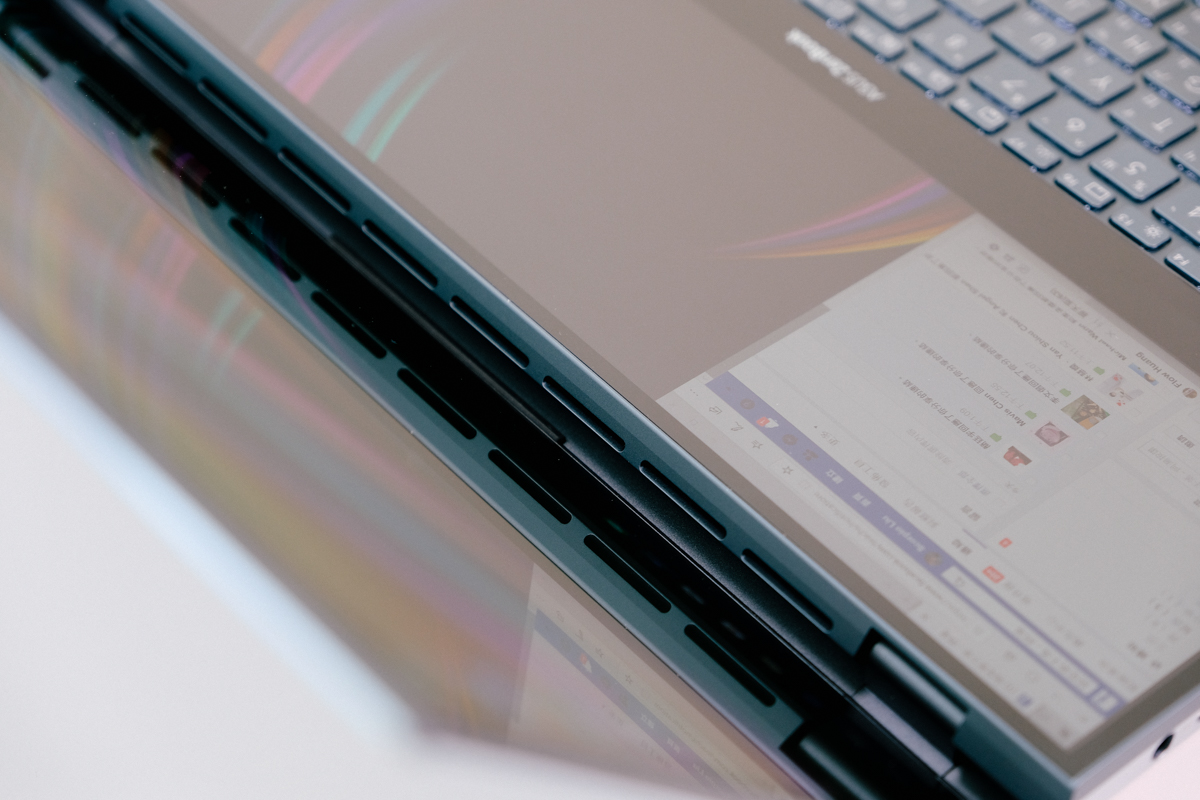 ZenBook Pro Duo 的散熱孔非常的多,在雙螢幕之間的縫隙也有,隨處可見,為的就是在高效能之下能夠維持良好的散熱效率。