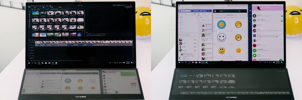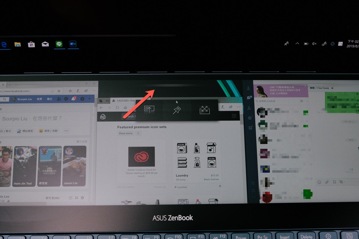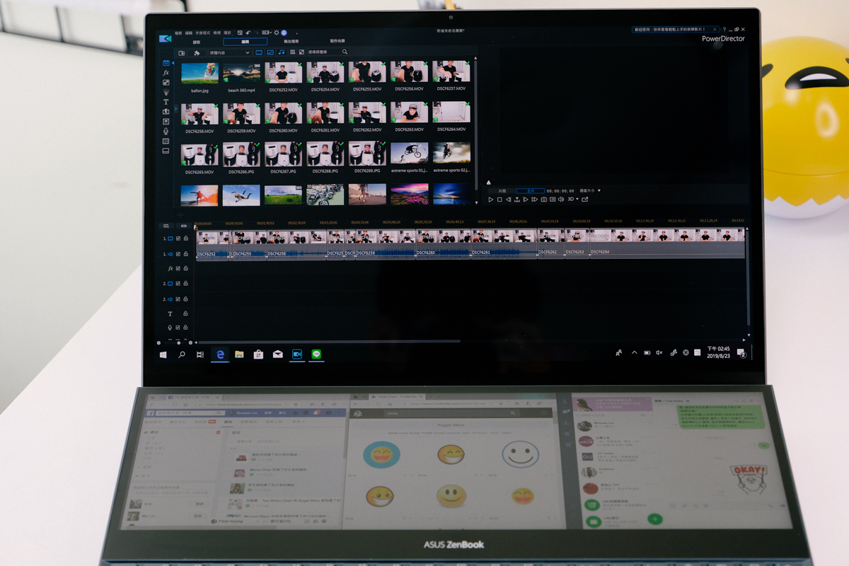 當我們了解視窗切分的捷徑後,就可以快速的將我們需要的應用程式排列整齊,像是邊剪輯影片,還可以邊回覆粉絲團、搜尋素材,然後又邊跟別人聊天(一心超級多用),當然,這除了是多視窗的運用外,要能夠讓這一切在多視窗下仍然能夠順暢運作,也是歸功於 ZenBook Pro Duo 的強大效能。