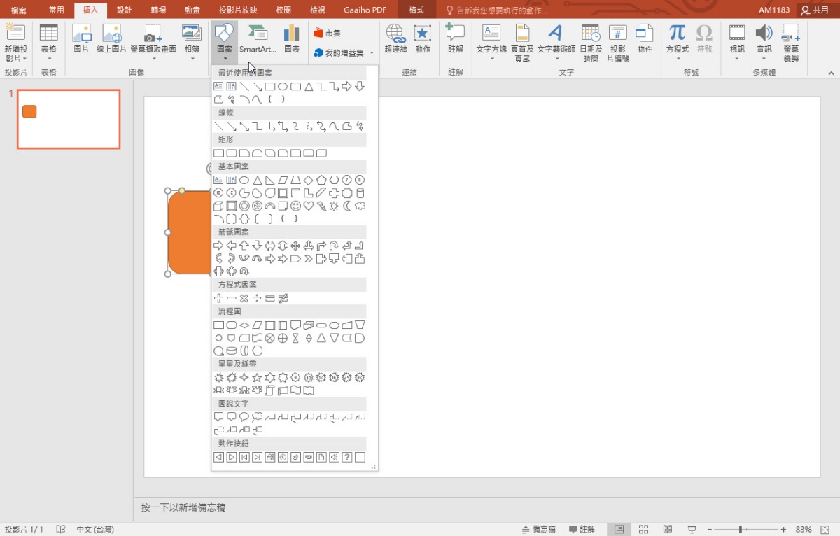 首先當然就是插入一個你要使用的圖案,然後設定好大小、顏色等。