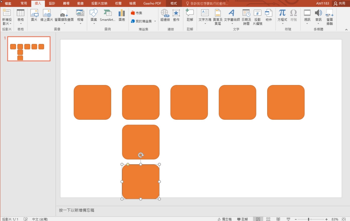 不囉嗦,今天同樣是來幫鄉親們解答一下,我被問的是「怎麼快速在 PowerPoint 裡插入相同間距的圖案」,為的就是方便做自己想要的樹狀圖表,當然,Office 內建就有樹狀表可以用,但如果你想要完全自己定義內容,當然就不適合用內建的範例,今天阿湯就教大家來用「F4」大法快速創建相同間距的相同圖案,而且不論是水平或垂直都可以使用,目前除了在 PowerPoint 裡有效之外,Excel 也是可以的。