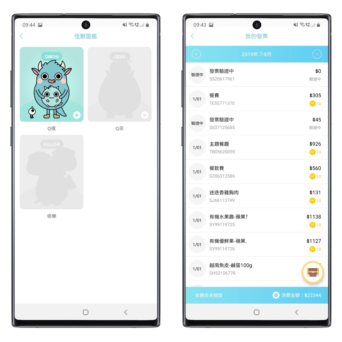 在怪獸圖鑑裡可以看到目前你收藏的怪獸有哪些,在發票列表中也可以查看你所有掃瞄進去的發票項目是什麼、金額是多少,最底下也能看到總消費金額,對於想統計自己的消費習慣的人來說是很方便的功能。