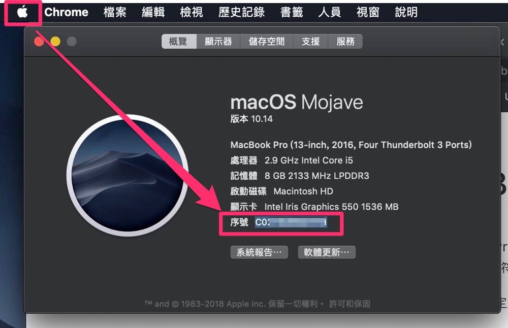 MacBook Pro 序號查詢方式