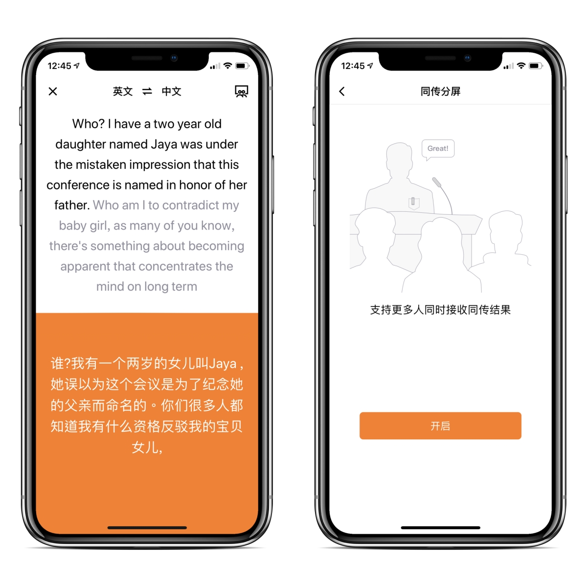 - 同時開啟 APP 進行錄音,同步轉譯文字並進行翻譯(支援中/英文互翻)