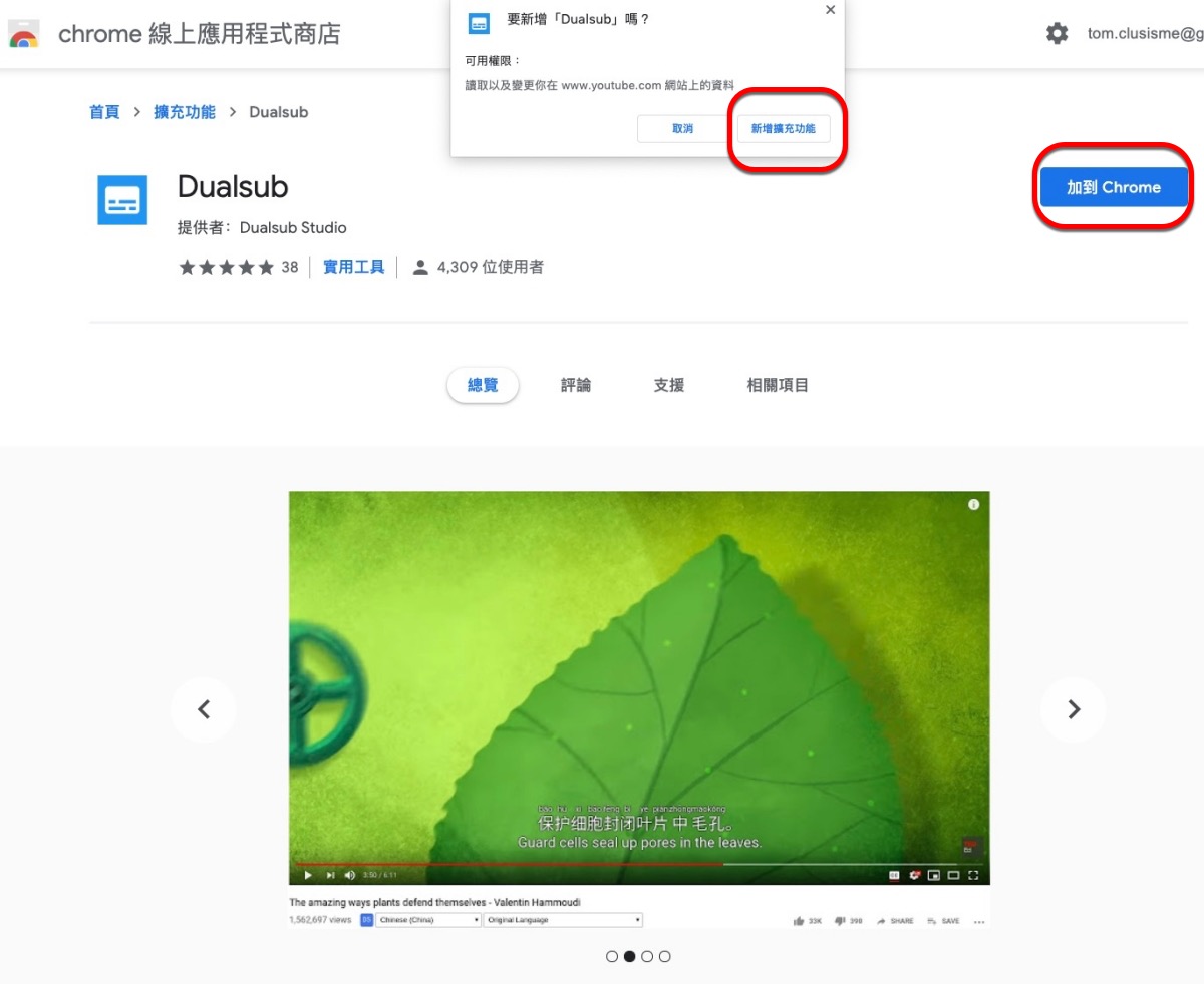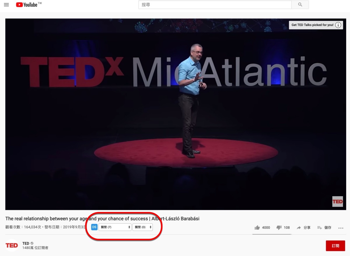 阿湯算是蠻常看 TED 的影片,可以練習英文聽力,不過我自己單字還蠻弱的,太久沒背單字,其實很多不常用的背了又忘,而 TED 的影片我都會儘可能找有有包括 YouTube 原生字幕的,因為這樣方便可以對照有什麼字我沒聽清楚的,然後再去查翻譯,但其實蠻耗時間,今天再來分享個瀏覽器外掛叫做 Dualsub,支援 Chrome 及 Firefox 二大瀏覽器,主要功用是可以讓 YouTube 原生字幕額外再顯示一行翻譯,是你自行選擇的語言,雖然第二語言是機器翻譯非人為,但只是用來對照單字或大略的看,還是很有用的。