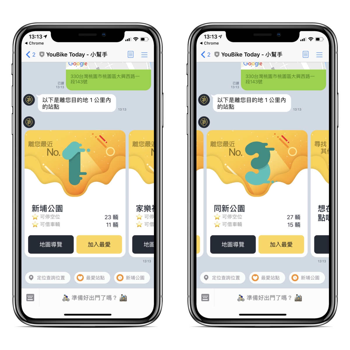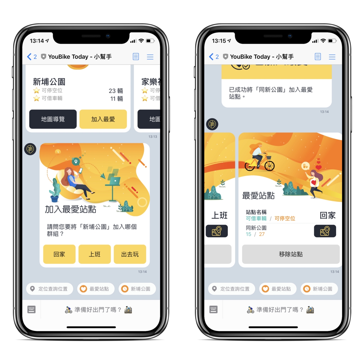 可以查詢 YouBike 站點的相關 APP 很多,就連 Google 地圖也可以(只是非全部站點都有提供車輛資訊),不過能少一個 APP 是少一個,現在只要透過 LINE 就可以查看 YouBike 站點資訊,還能規劃騎乘路徑,只要在 LINE 加入「YouBike Today - 小幫手」這個 LINE 機器人的頻道,就可以簡單的點擊幾下就完成查詢及路徑規劃,其中還可以將常用站點加入最愛,隨時召喚來使用。