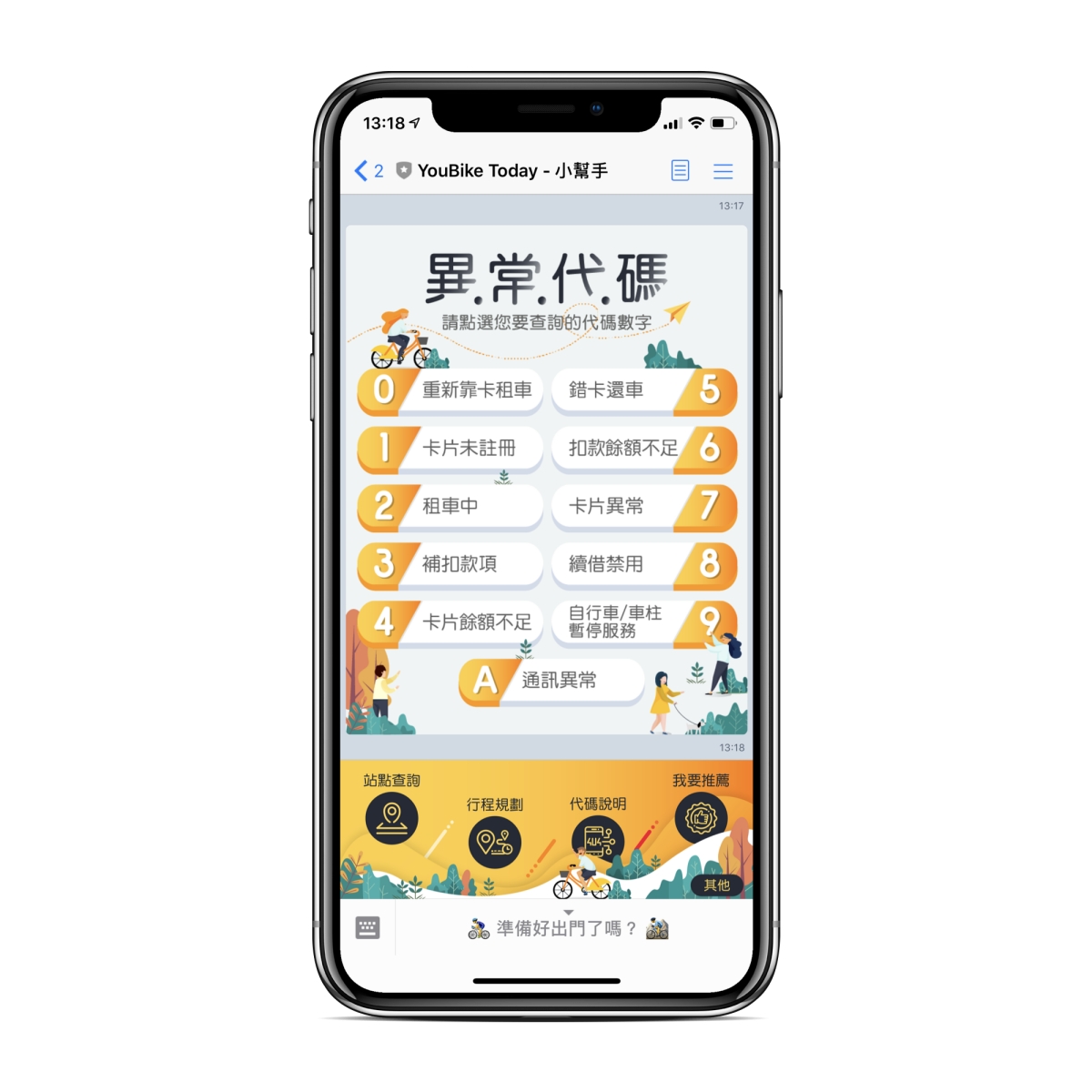 當你租車時有出現異常,這邊也有異常代碼讓你對照,基本上騎 YouBike 會用到的功能及資訊,個 LINE 機器人裡都包括了,算是蠻完整了。