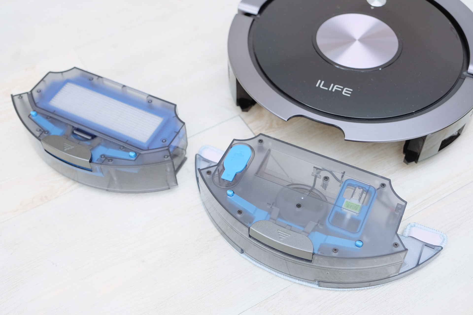 ILIFE A9s 掃地合一機器人有一個部份相當的特別,一般的掃拖合一機器人,普遍是同時裝上集塵盒及水箱,而 ILIFE A9s 將集塵盒跟水箱是分開的,一次使用一種,阿湯認為整合一起與分開都各有優缺點,我們往下先來看一下 ILIFE A9s 的各別使用設計。