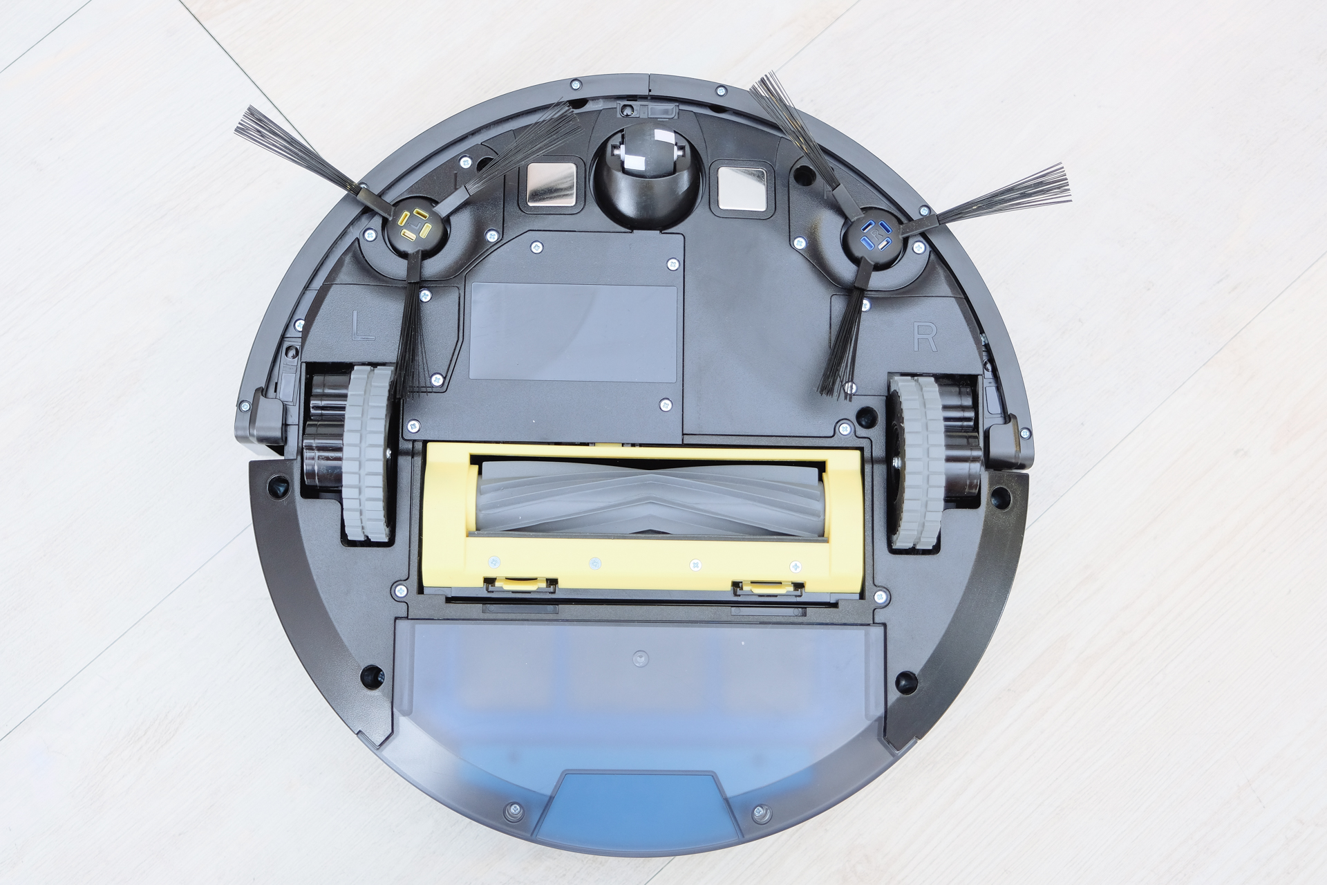 底部一共有三組下視感應器,避免跌落樓梯,邊刷具備有二組,清掃的範圍更大,效率更好。