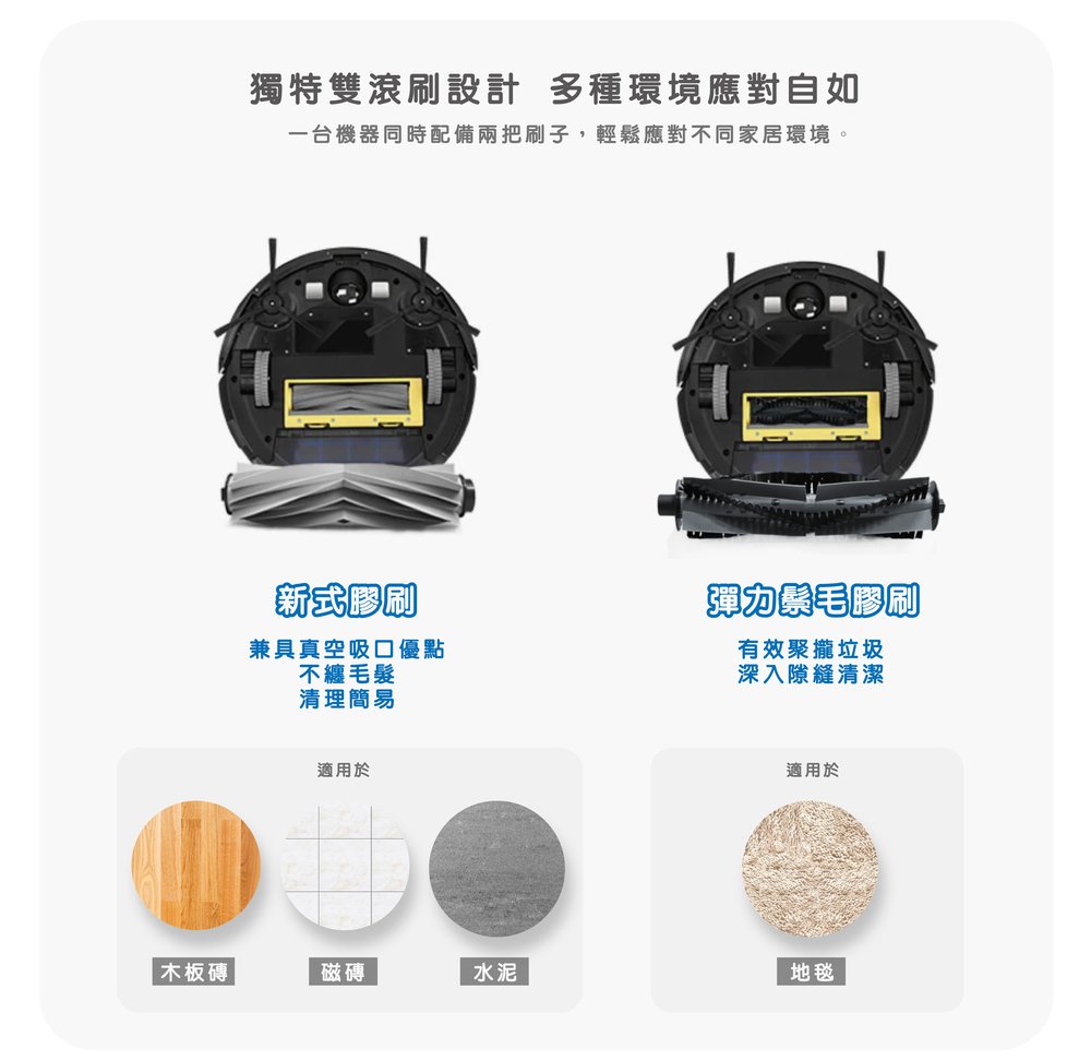 - 優點:水箱容量更大可一次性拖更大的範圍、機體更薄可適用更多傢俱底部高度
