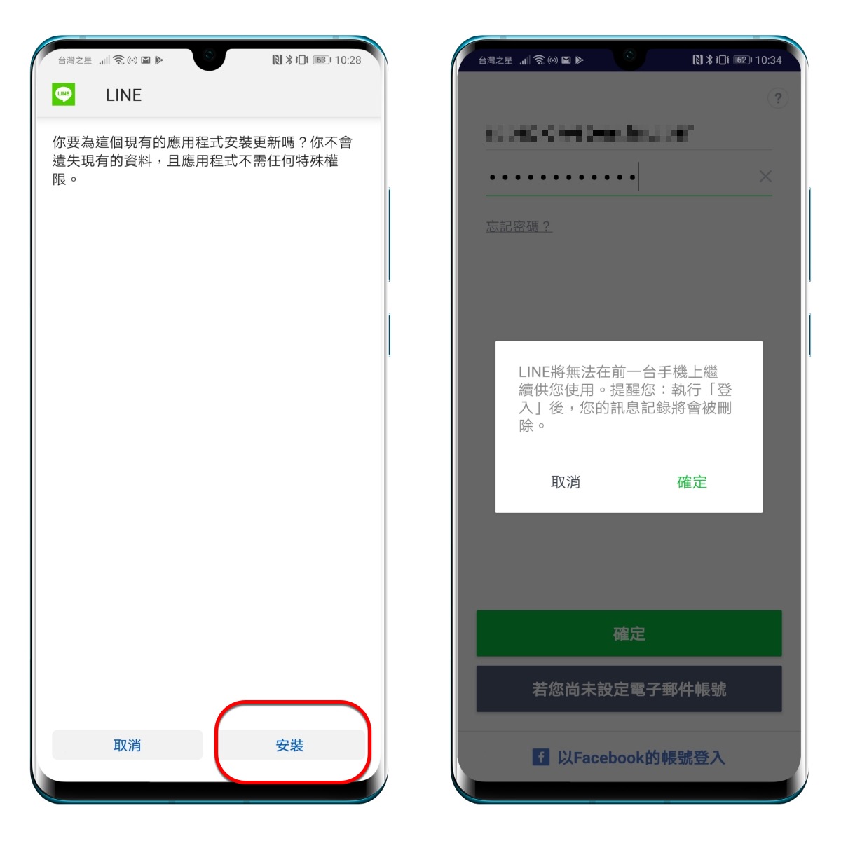 然後進行安裝,並登入你的 LINE 帳號,這時登入聊天記錄會全空,沒有關係。