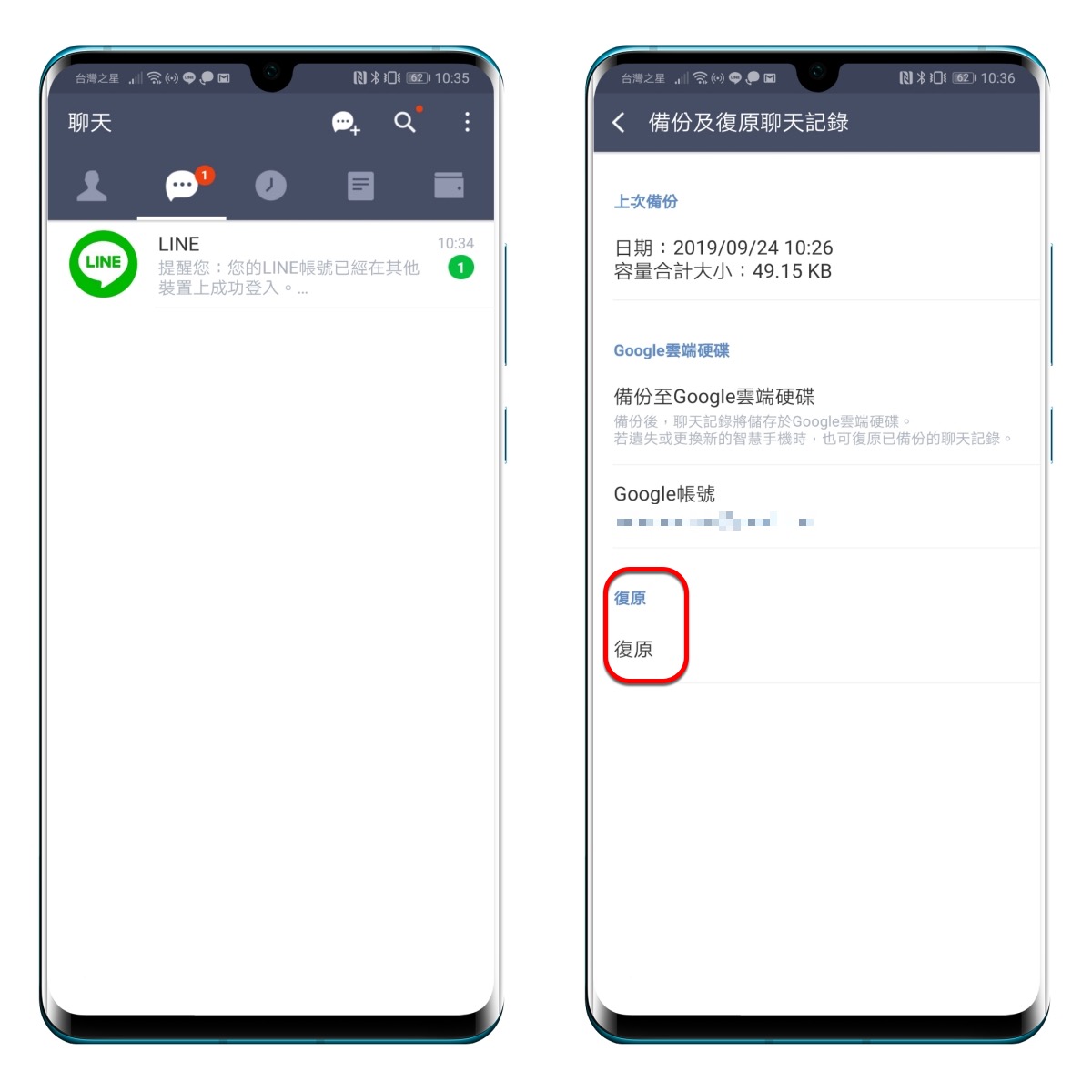 登入後,一樣到備份及復原聊天記錄那裡,這次選擇「復原」。