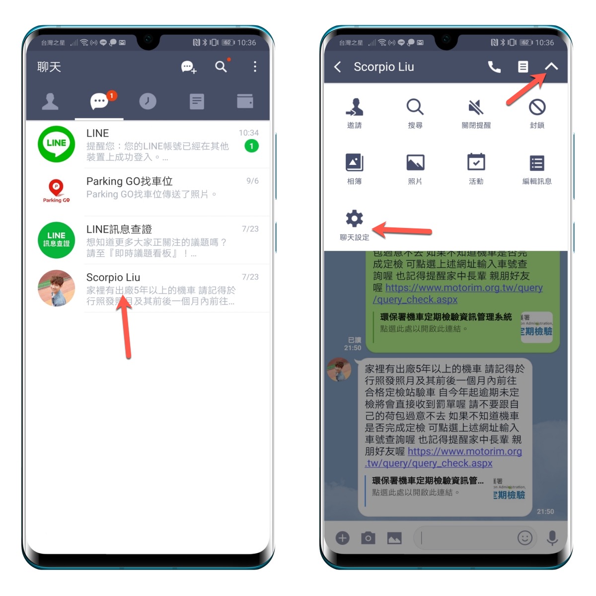 就會看到原本的聊天記錄匯入了,由於是 Android 7.0 以上,沒辦法用軟體一次性的轉移,會比較麻煩一點,你必須要「一個一個」的進入所有聊天視窗,點擊右上角的選單,進入聊天設定。