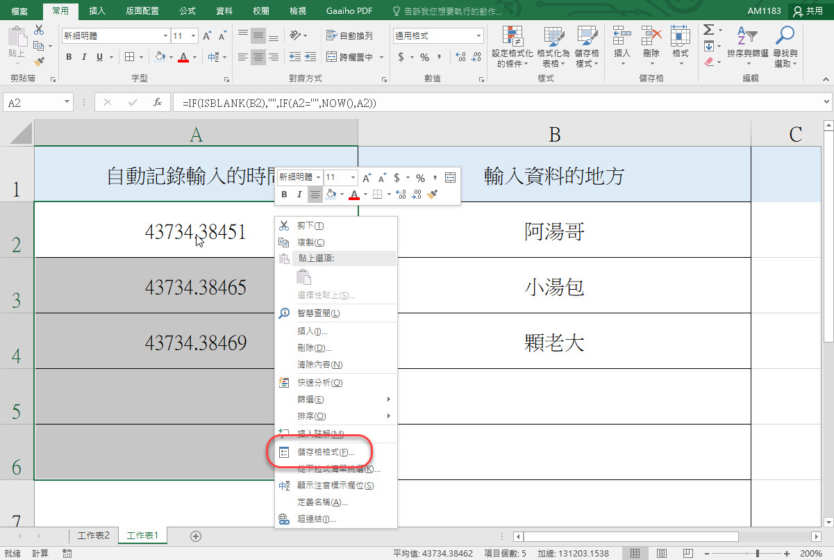 Excel 教學 - 輸入資料的同時自動幫你記錄輸入時間