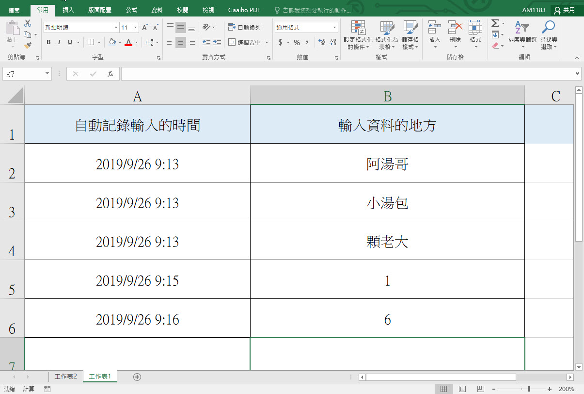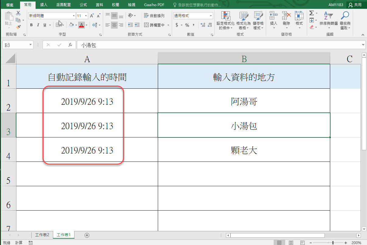 這就是我們今天要做的,在 B 欄輸入資料時, A 欄就會自動顯示輸入資料的時間。