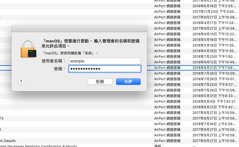 然後再輸入一次系統的管理者帳密後允許。