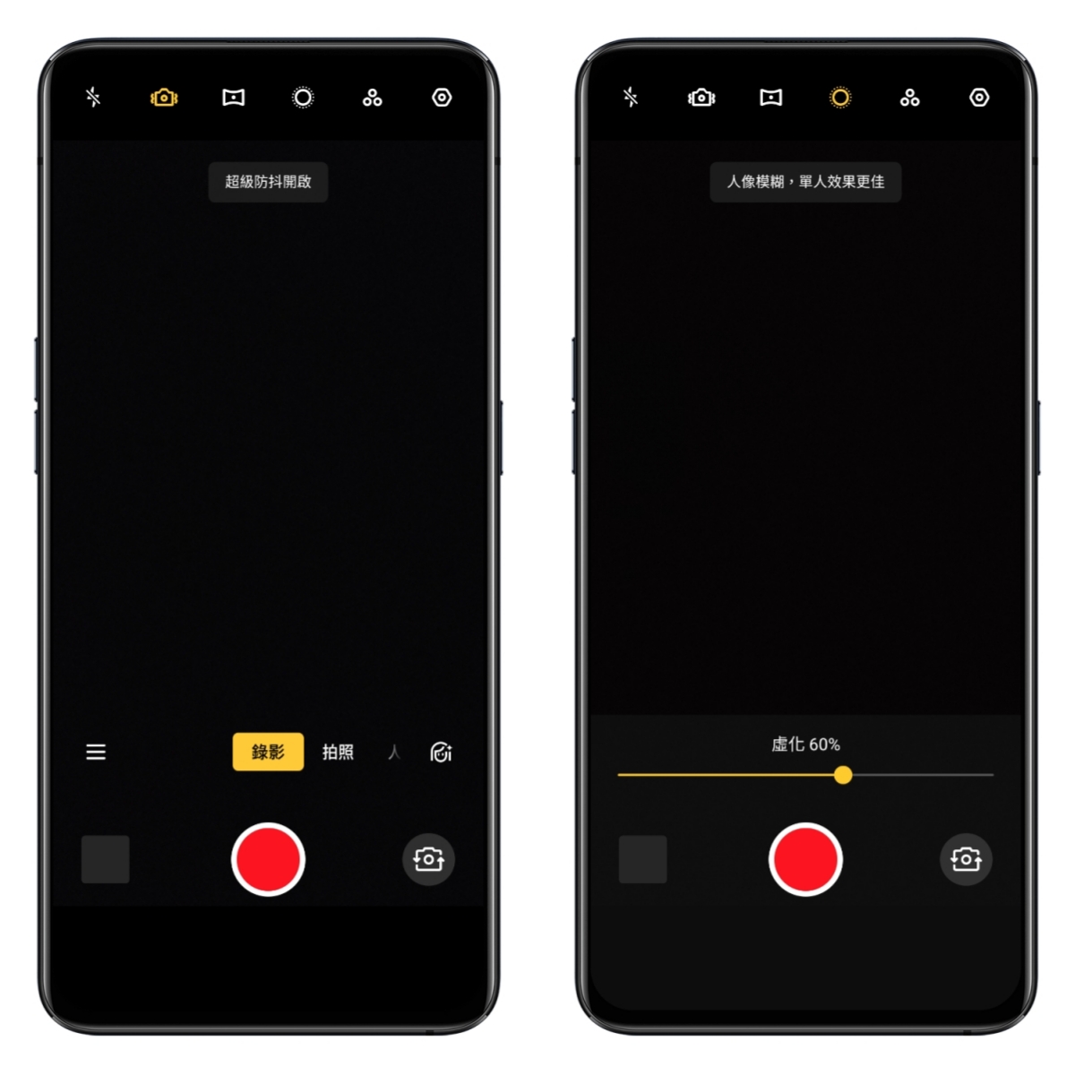 在往下看之前,這次在相機的功能部份,單看介面其實看不太出來有什麼大變化,但其實這次 OPPO Reno2 在拍照及錄影的部份加入不少新功能,包括更強的夜間拍攝「極夜模式」,支援多種影片錄製音效(標準、3D 錄音、錄音變焦),另外影片支援「超級防手震」、「影片虛化」等功能,不論是拍照或錄影都有更多的應用方式。