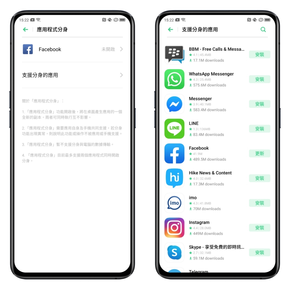 支援應用分身的 APP 相當的多,常見的 Whatsapp、LINE、FB、Messenger 等都有。