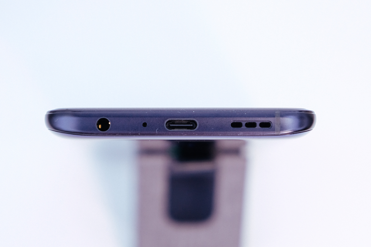 底部為 3.5mm 耳麥孔(還有保留著很感動),降噪麥克風、USB Type-C 連接埠以及喇叭。