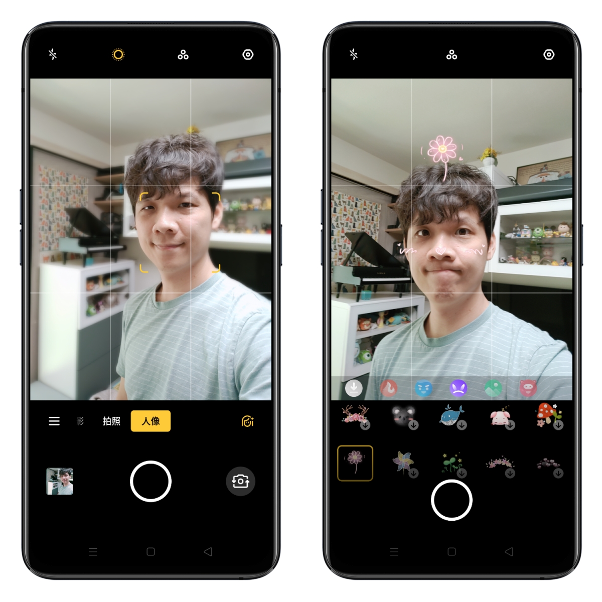 前置鏡頭同樣支援人像模式的景深感,還有萌拍可以玩。