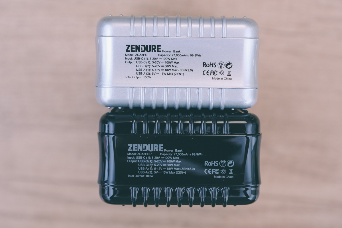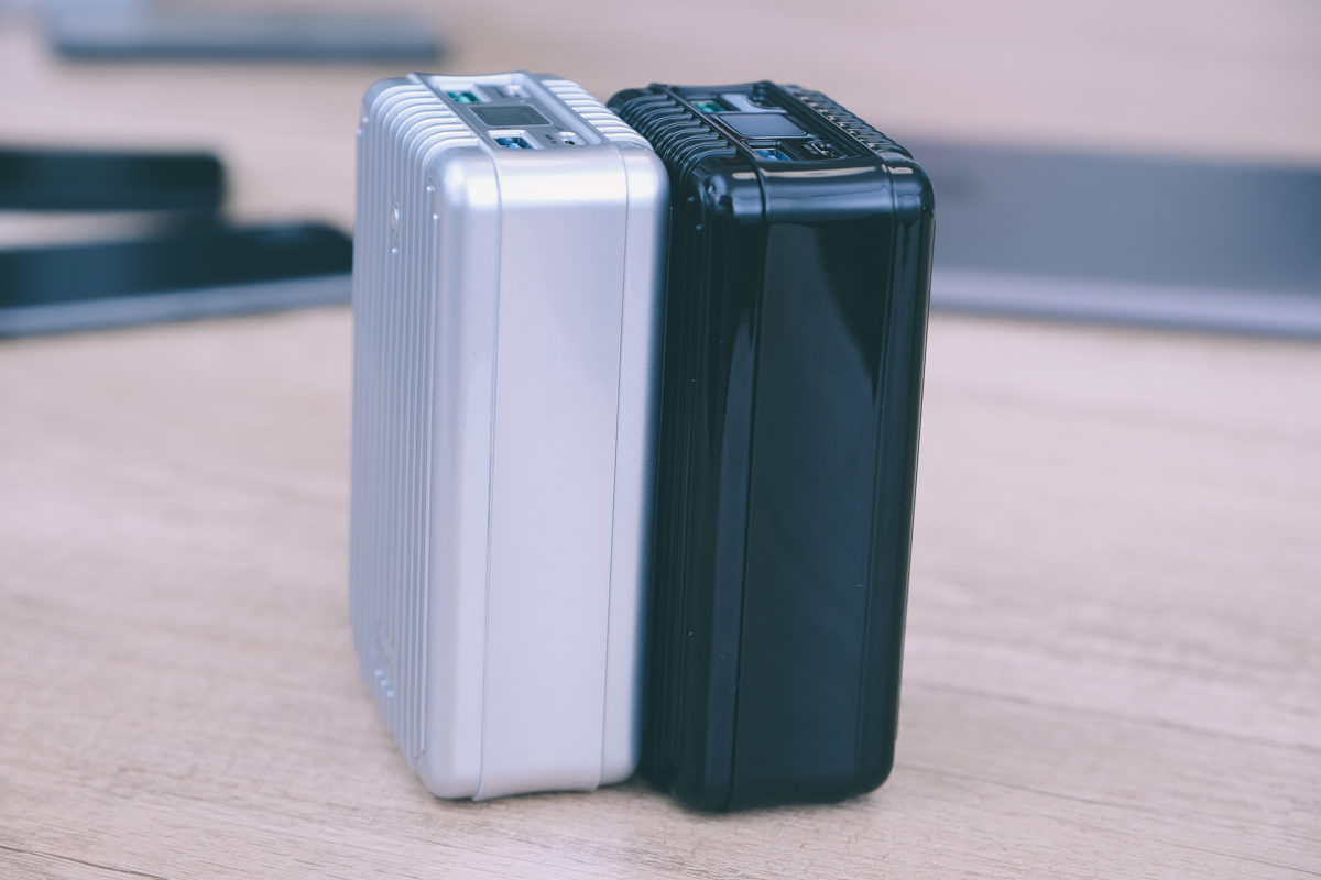 目前 Zendure 台灣開賣的有黑色、銀灰色以及藍色(看照片也很美,可惜我沒有),是說這外型也太好看,讓人出現選色困難啊,行動電源外型看起來很像行李箱,雖然是 27,000mAh 大電量,但是體積(119 x 73 x 42mm)及重量(500g)還算適中,我覺得算是在方便攜帶的範圍內。