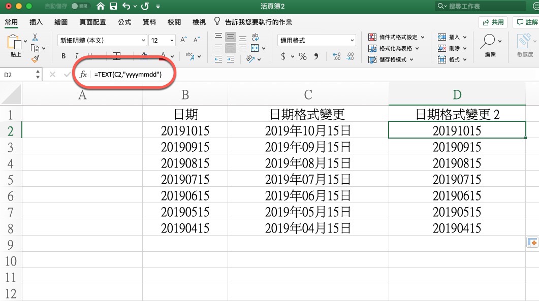 所以,我們改用 TEXT 這函數來額外轉換日期格式,公式如下: