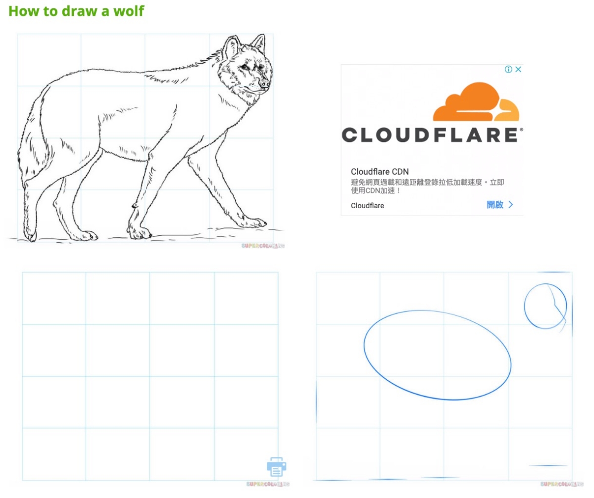 會從基本構圖開始到畫出一整隻狼,完整的教你,我覺得相當的棒。