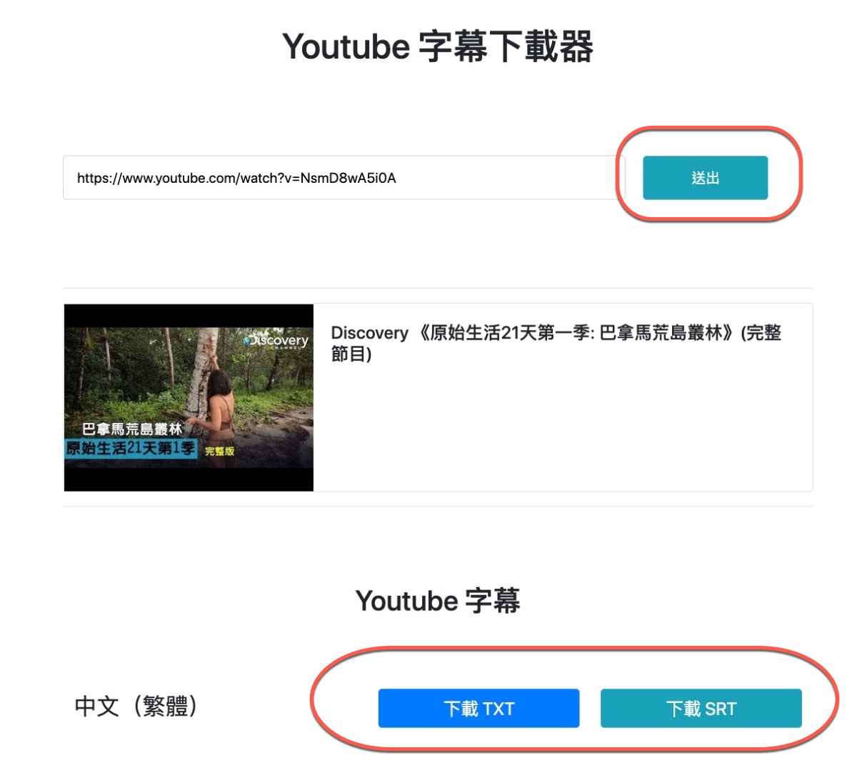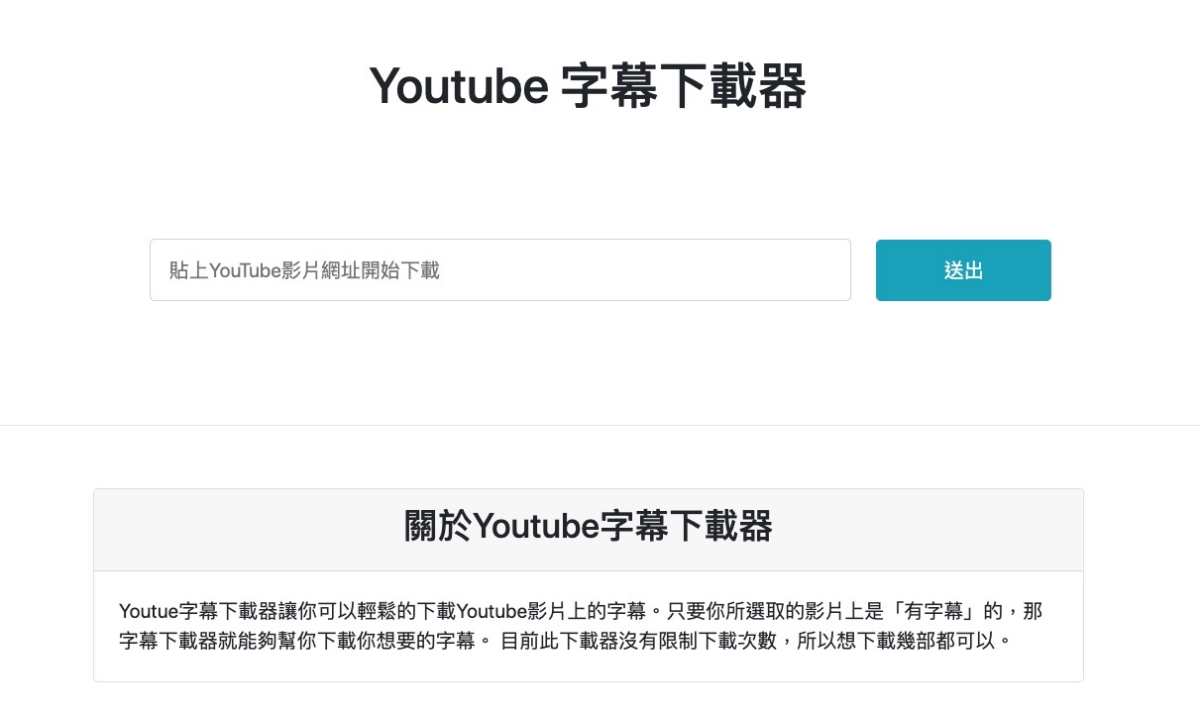 網站:請點我前往首頁就是貼上要下載字幕的 YouTube 網址,下方也有一些關於工具的介紹。