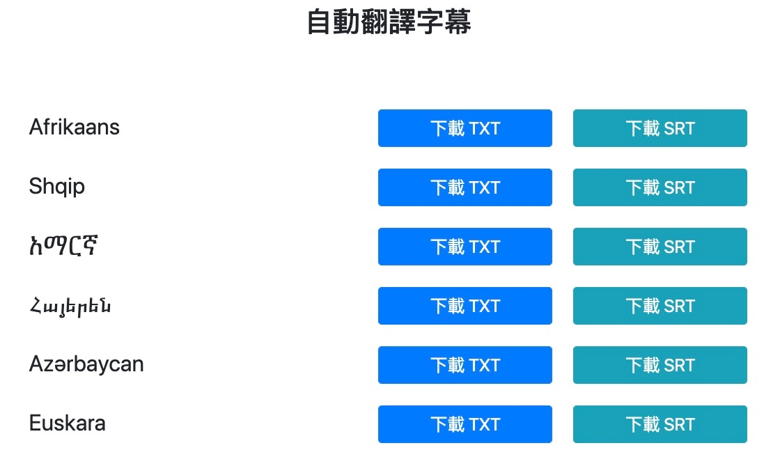 再往下拉還有自動翻譯字幕可以選擇下載。