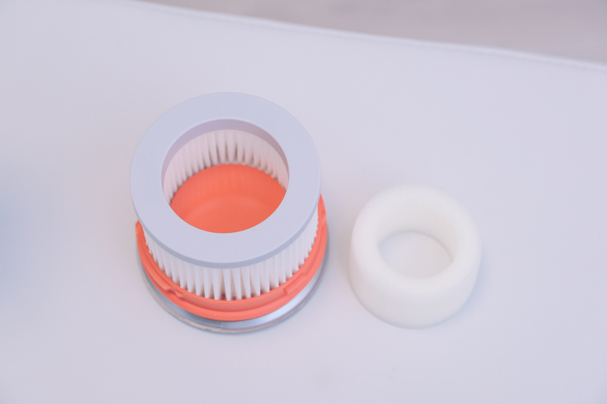 在這個 HEPA 濾網內層還有一個前置海綿,可以阻擋一些較大型的灰塵,也可以避免 HEPA 濾網太快就被堵塞失去效果,這二個都是可以直接水洗,只要徹底的晾乾後就可以裝回繼續使用。