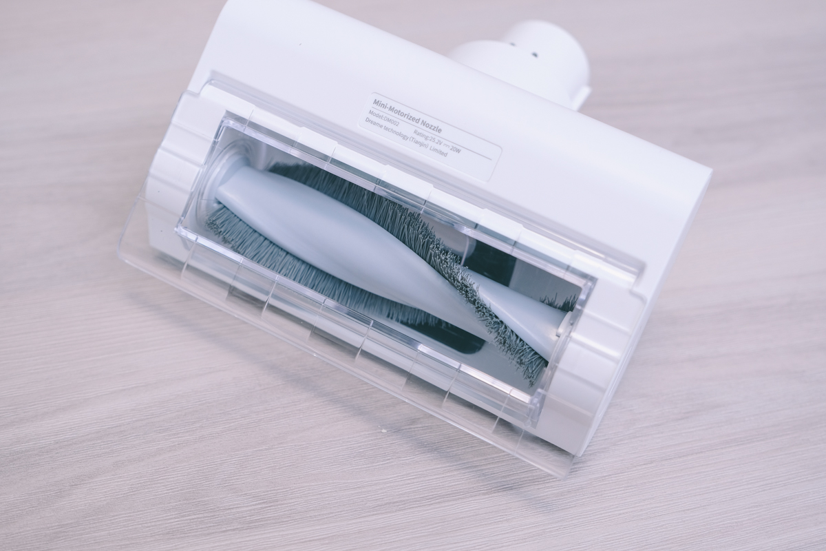 四個刷頭由左至右分別為電動除蟎刷、軟絨滾刷主吸頭、二合一毛刷、二合一扁刷,各有不同用處,不過我蠻喜歡二合一毛刷跟扁刷,因為和刷毛都是做在一起,可以節省一個刷頭佔用空間。
