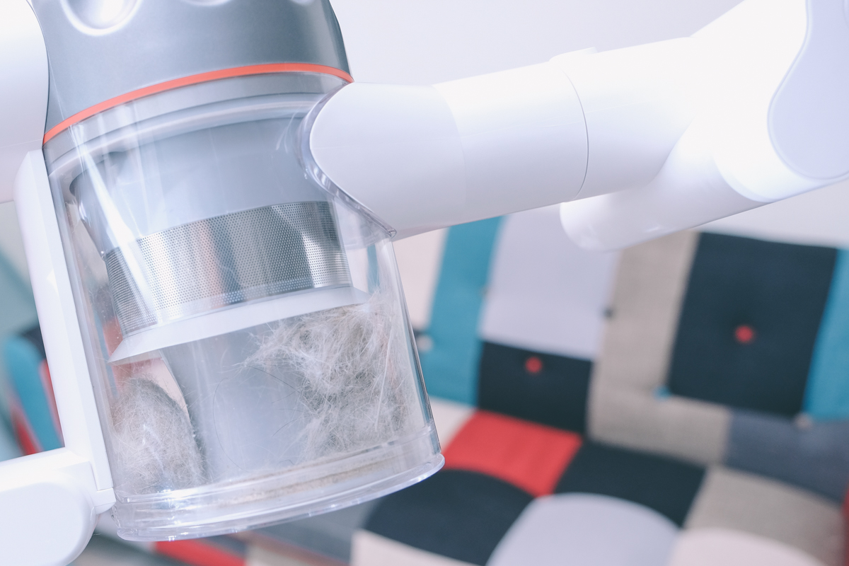 依照使用經驗,裡面的集塵杯,通常每隔一段時間就會充滿灰塵或是被毛髮纏繞,這時你可以用二合一扁刷的後方插入集塵杯,轉一下就可以拆卸集塵杯,非常的簡單。