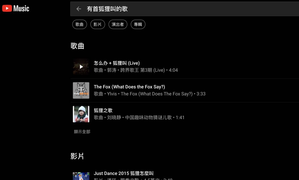 ● 智慧搜尋功能:如果有時候想找個音樂但就是想不起來歌名,這時候我們就能輸入像是:「有首狐狸叫的歌」的指令找出想聽的音樂。此外使用者還可以用歌詞來找曲,就算輸入的歌詞有錯竟然也還是可以順利找到想聽的歌曲。