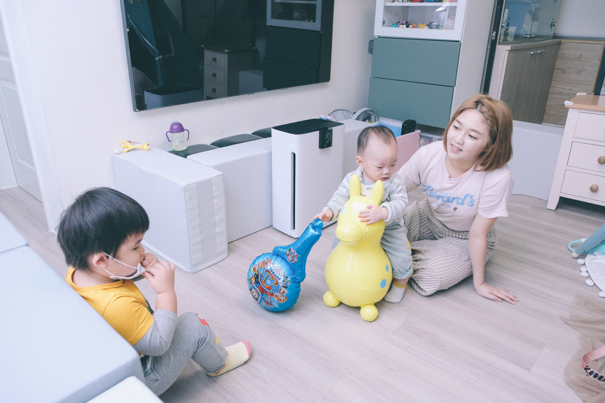 空淨機是一定要有兒童鎖的,因為在我把空淨機放在那拍攝的期間,我兒湯包從頭到尾沒停過的一直想要按面板的按鈕,如果沒有兒童鎖大概已經切換模式 100 遍了吧。