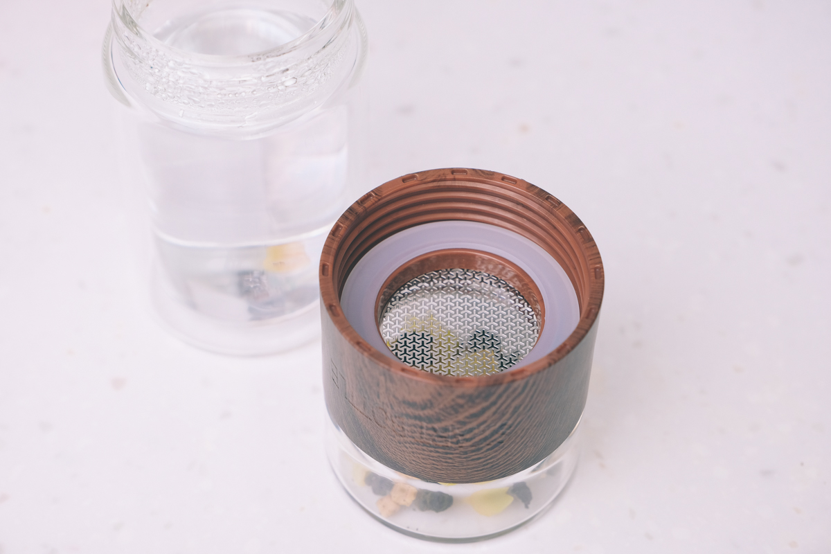 鎖上濾網後像這樣,如果你的茶葉需要先洗茶,也可以這時先倒熱水洗茶後再蓋到熱水那一端。