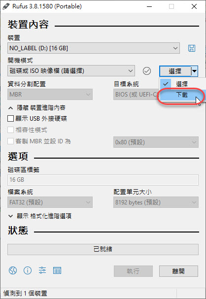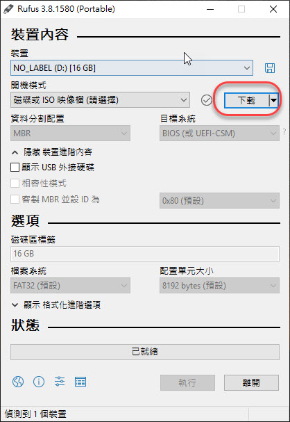 Rufus 下載頁面:請點我前往