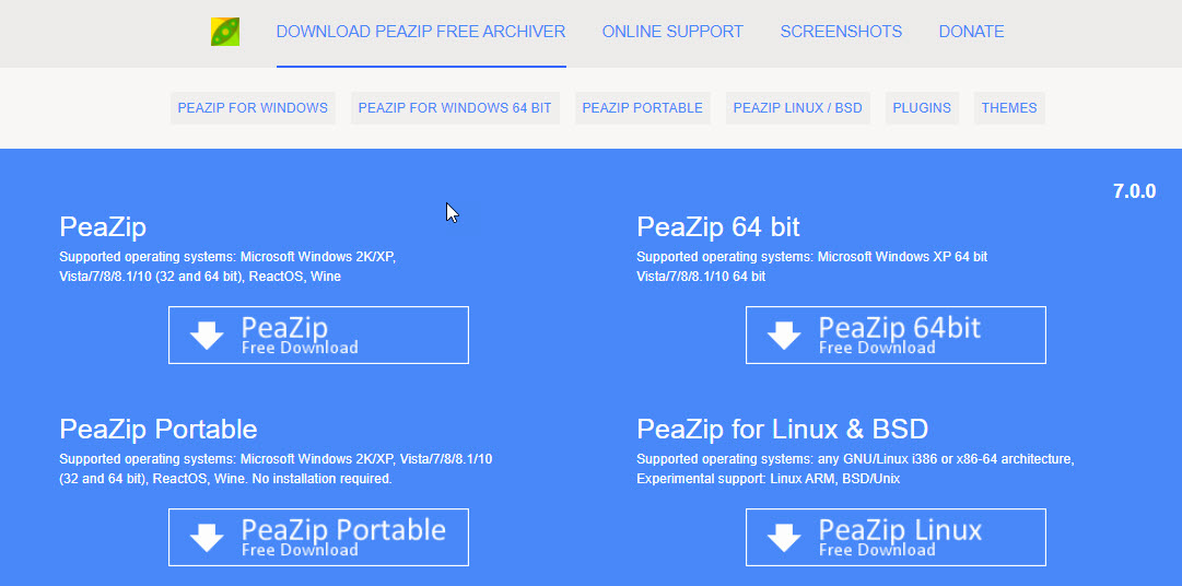 這裡,如果是想要壓縮檔案支援 7z, FreeArc's arc/wrc, sfx (7z and arc), bz2, gz, paq/lpaq/zpaq, pea, quad/balz/bcm, split, tar, upx, wim, zip,如果只是解壓縮的話超過 180 種格式,當然 rar、zip、7zip 這類常見檔案是沒問題的。